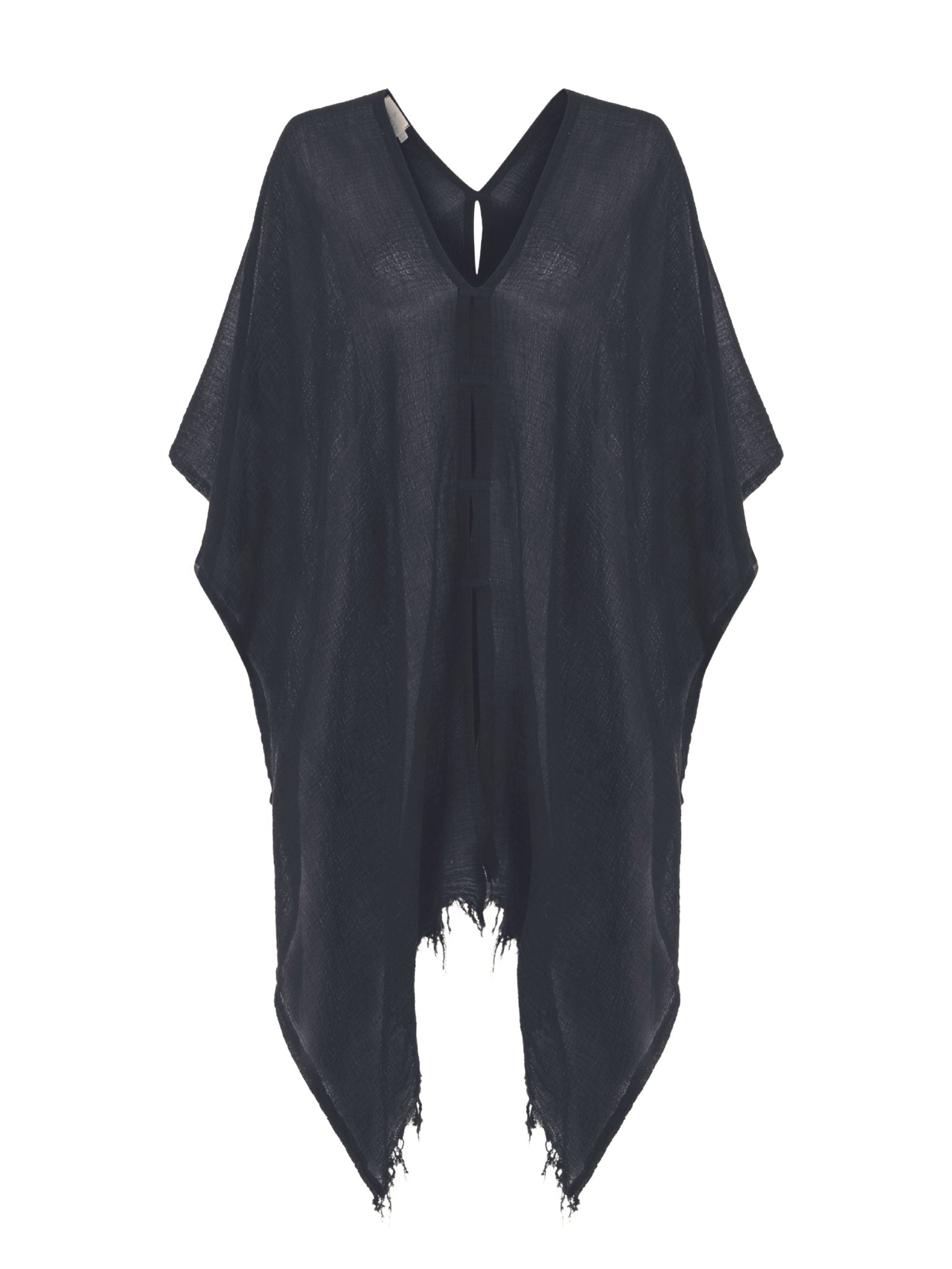 Make a memorable statement by the sea ​or in the lounge with the hand loomed Ava Kimono Navy. An asymmetric frayed hem along with side slits, add movement and flow to a roomy drape. Featured artisanal striped motifs woven into its flowy fabric which boasts a linen-like feel. Breathable fibers and naturally built-in cooling properties make this the perfect beach kaftan.