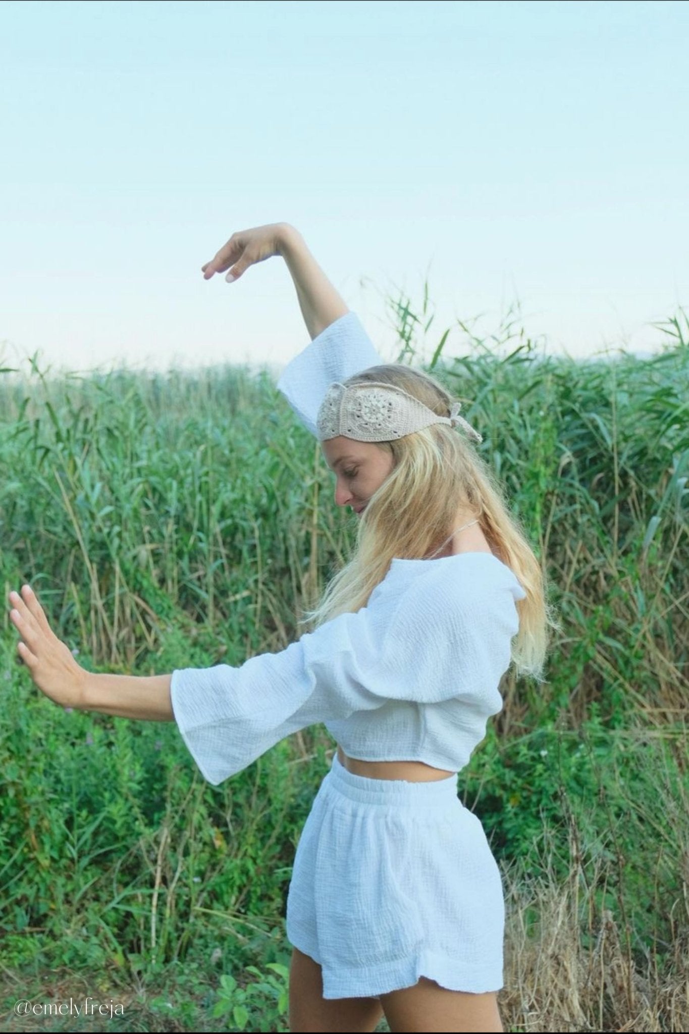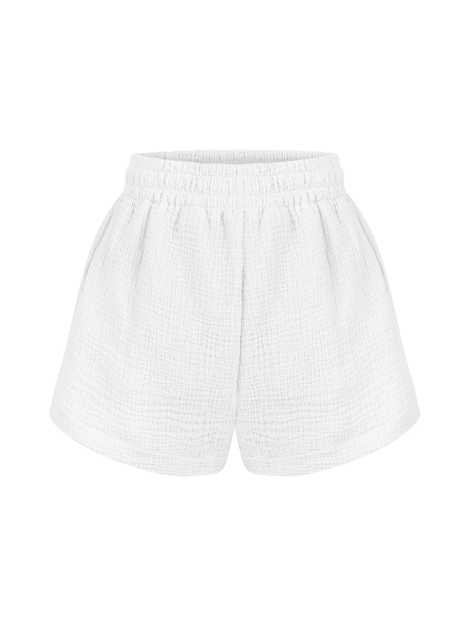 Effortless Echo Boy Short White is an ideal style for brunch dates or a coffee break. Designed with a breeze from 70’s, will be a timeless piece in your wardrobe that withstands trends for supporting slow fashion. Made with sustainability in mind, this short features breathable fibers. This high elastic waisted short is slightly oversized with side pockets, allowing you to move freely throughout the day.