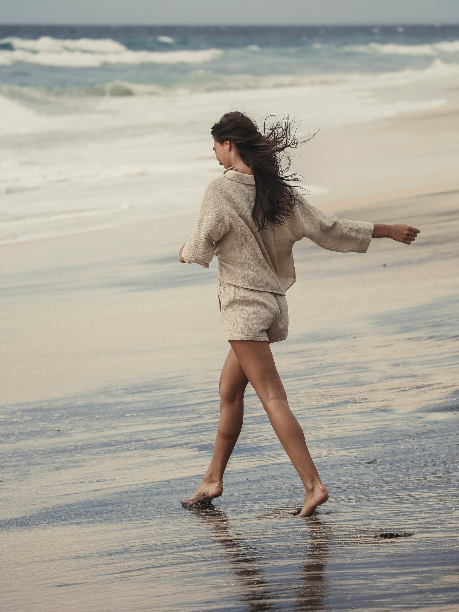 Lovers of the Turkish handloomed technique and anyone who is craving for an alluringly elegant summer silhouette, Echo Mini Shirt Oatmeal is the perfect match for what you are looking. It is crafted in a delicate, soft-crinkle cotton that brings statement to mid-week. It is a must-have for whom loves to move during the day freely. One of our most inspired designs features breathable fibers to keep you cool.