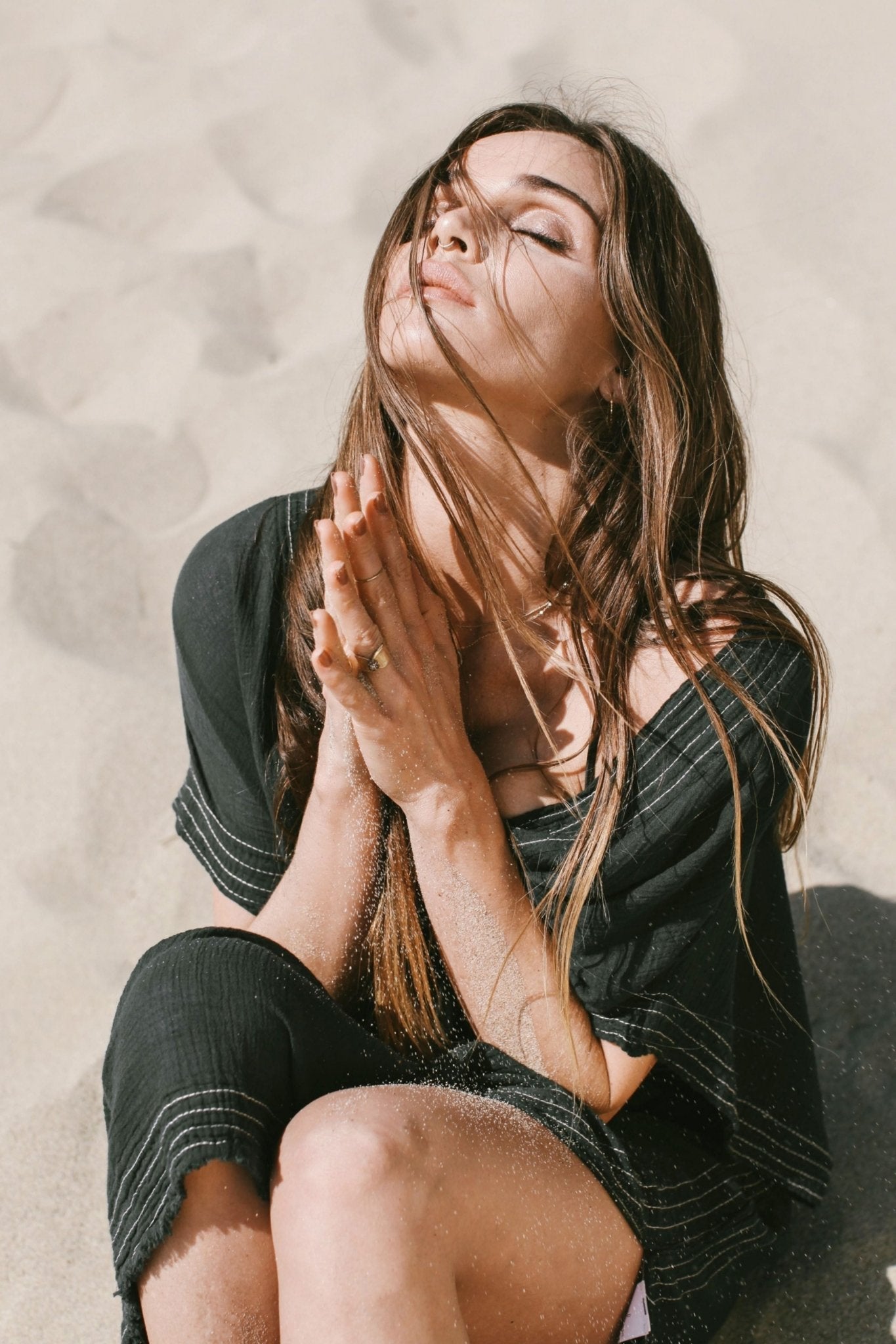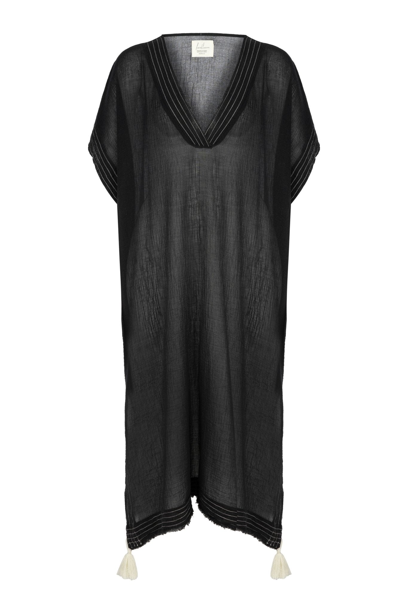 The Ela Kaftan Black is one of our best seller, and it’s easy to see why. This stylish, gauzy gown is made of lighter-than-air cotton—undeniably our best fabric. Breathable fibers and a flowing cut create a sophisticated statement while sky-high side slits let you show a little leg. The hem is accented with oversized tassels. This kaftan is simple, luxurious, and perfect for making an entrance.