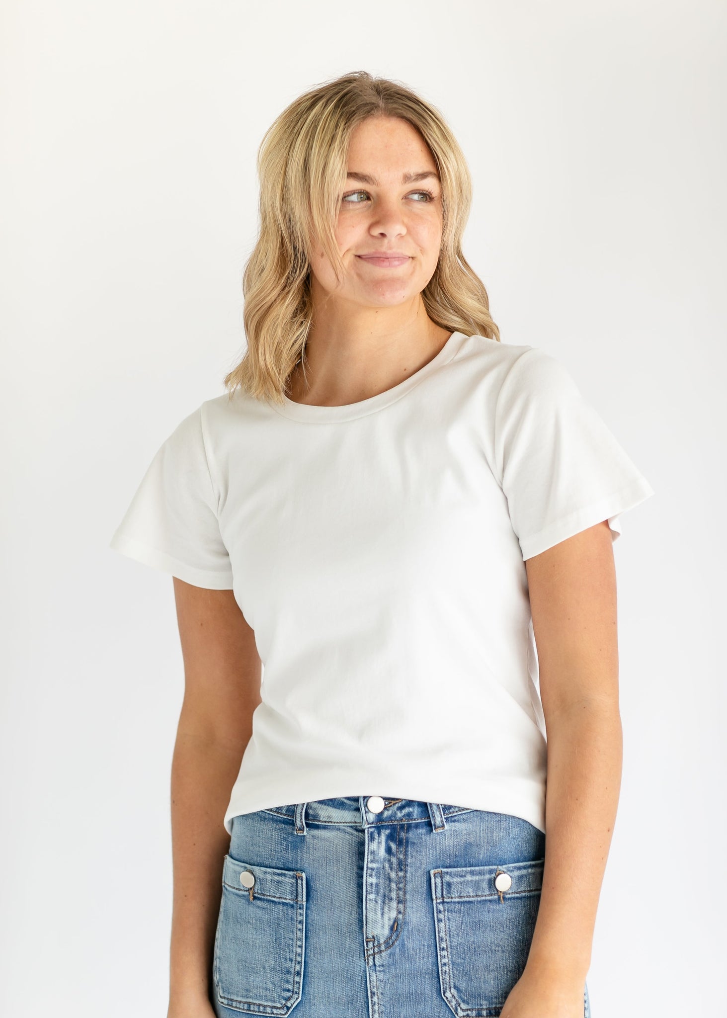 The Essential Flutter Sleeve Top is an Inherit Design that requires NO layering! This elevated top is designed in a feminine fit with a long modest hem. If you love the Short Sleeve Essential Basic Tee, this top is crafted from the same material! It comes in sizes XS-4XL with plus sizes available. You'll feel comfortable wearing this solo, or layered with your favorite denim jacket or cardigan! The flutter sleeves add an elegant touch to finish off this must-have top!