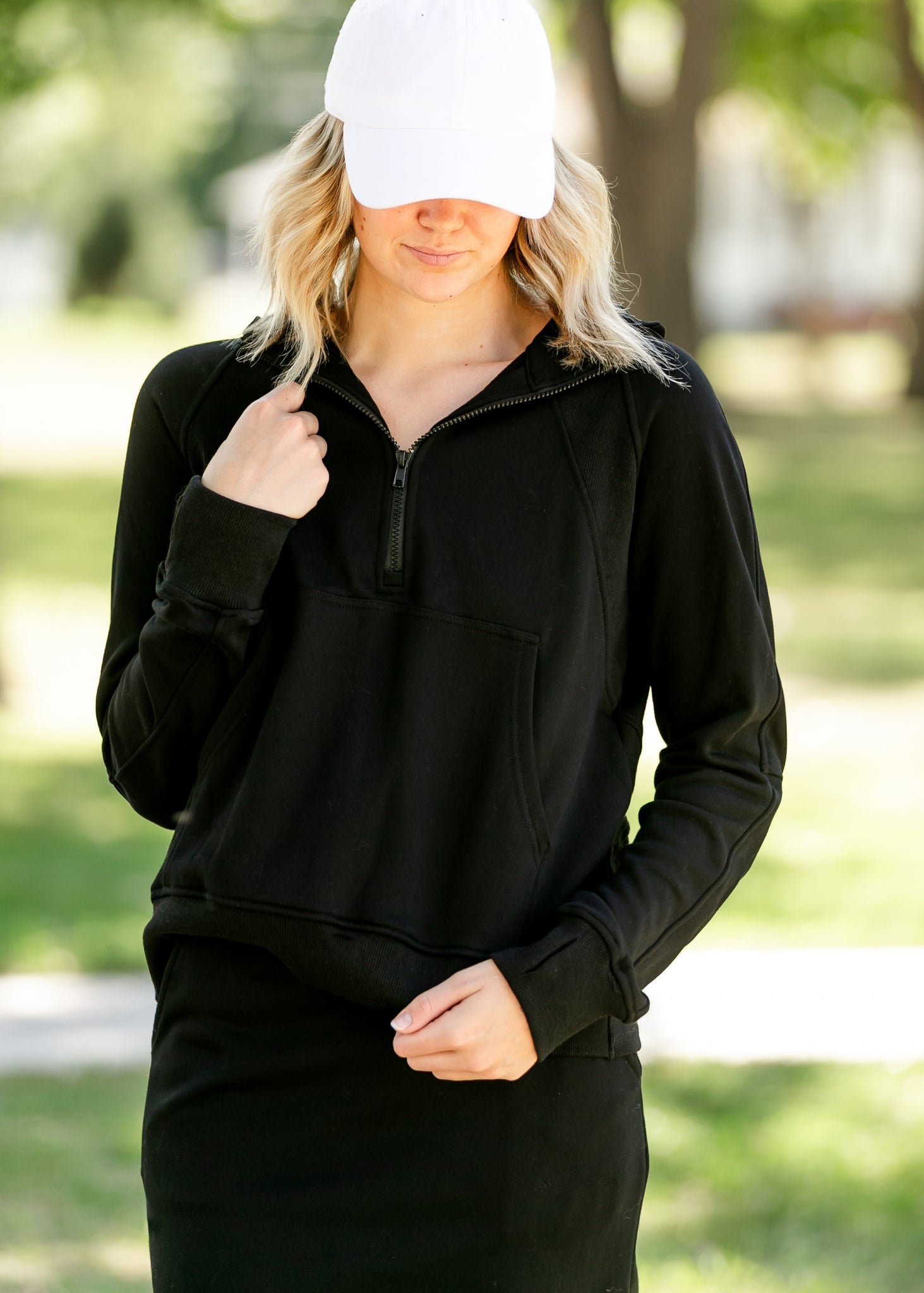 The Essential Sweatshirt Skirt Set is an Inherit Designed modest and cozy set you will love! Crafted from high-quality sweatshirt material, the top features a ribbed crewneck, and sleeve cuffs. The skirt is a midi length with a stretchy elastic waist. The neutral black color is classic and will go with all the things!