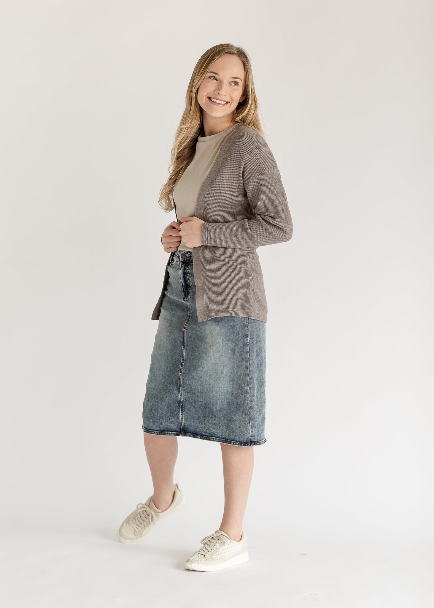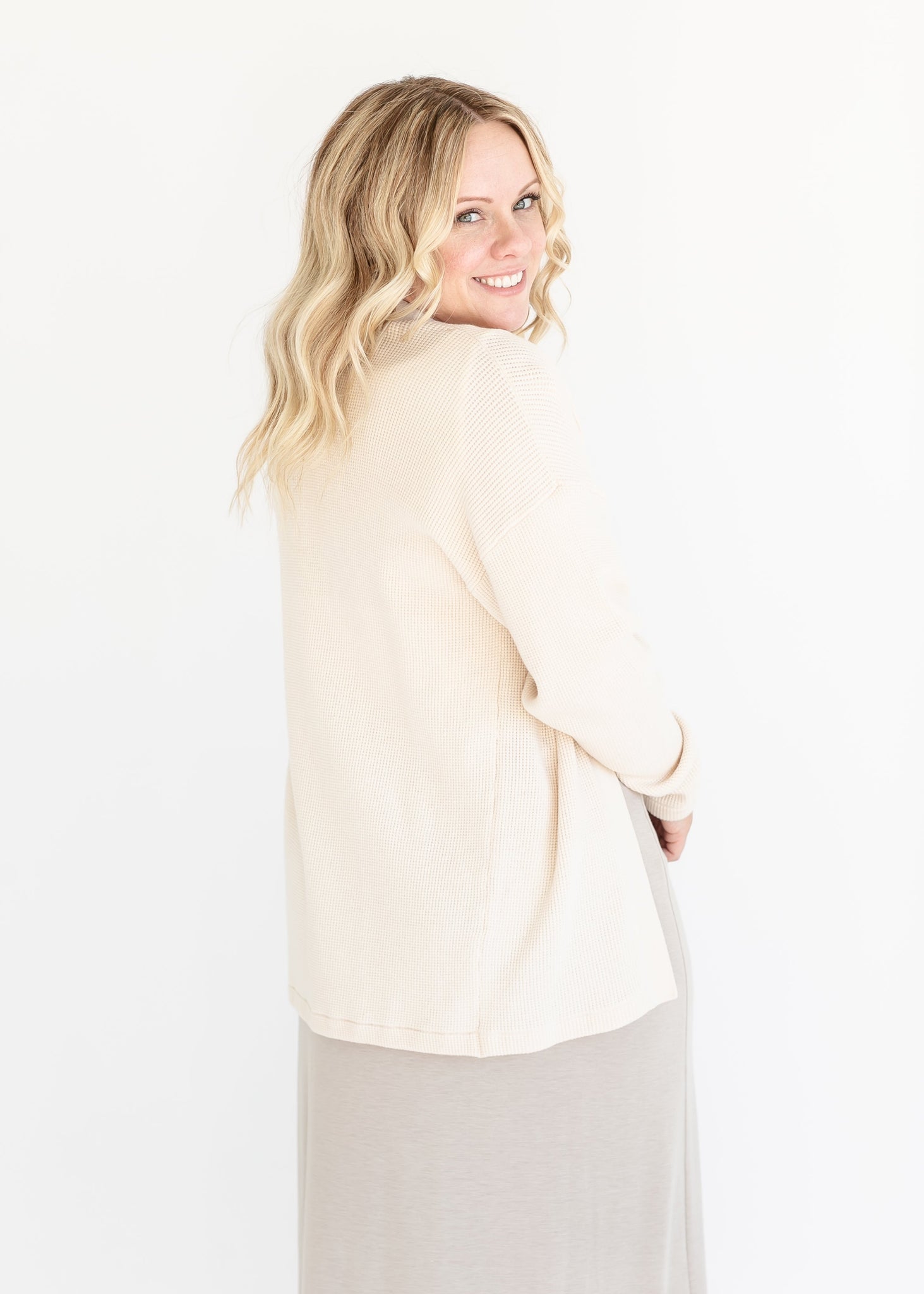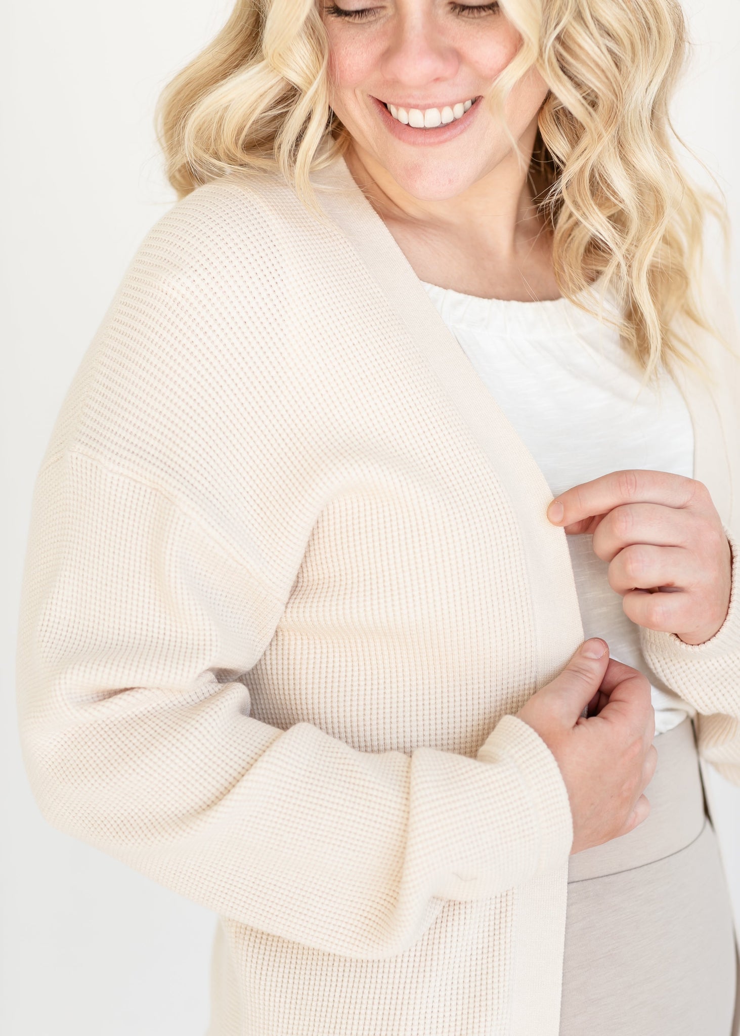 Our Essential Waffle Knit Cardigan is an Inherit Design we have added as an elevated essential! This cardigan is tailored in a straight fit with clean + simple lines that will hit right below your hips, and it comes in plus sizes! The waffle knit texture and high quality fabric are EVERYTHING and the marled look adds depth to this amazing cardigan. You'll be able to wear this for any occasion over your favorite top and with all types of bottoms!
