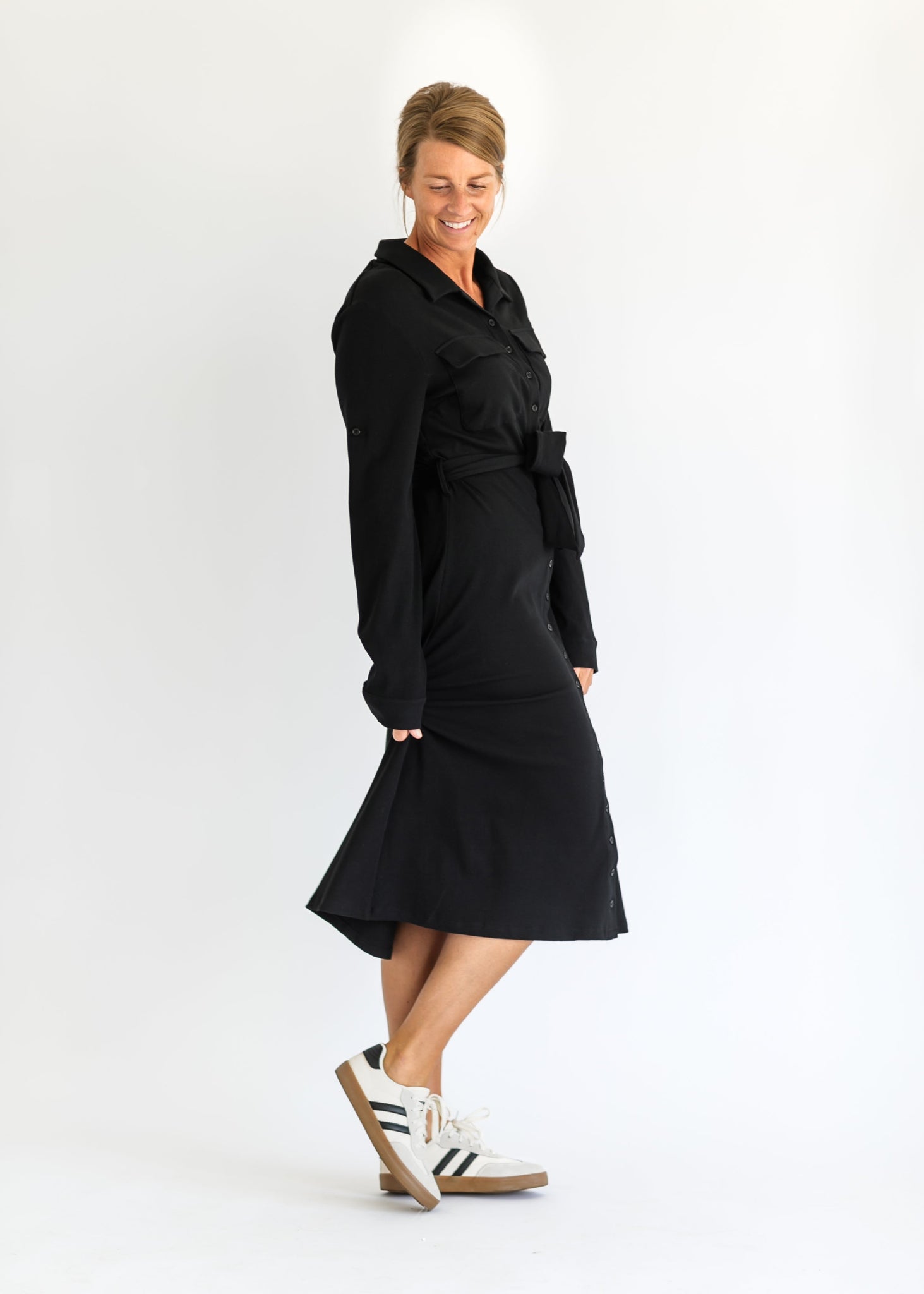 The Lorraine Ribbed Knit Maxi Shirt Dress is a perfect blend of comfort and sophistication, effortlessly merging casual ease with a touch of elevated style. Crafted from a textured ribbed knit fabric, the silhouette of the dress is both relaxed and graceful, featuring a loose fit that skims the body while maintaining a flattering drape. The maxi length adds a sense of drama and sophistication, elongating the silhouette and creating a graceful flow.