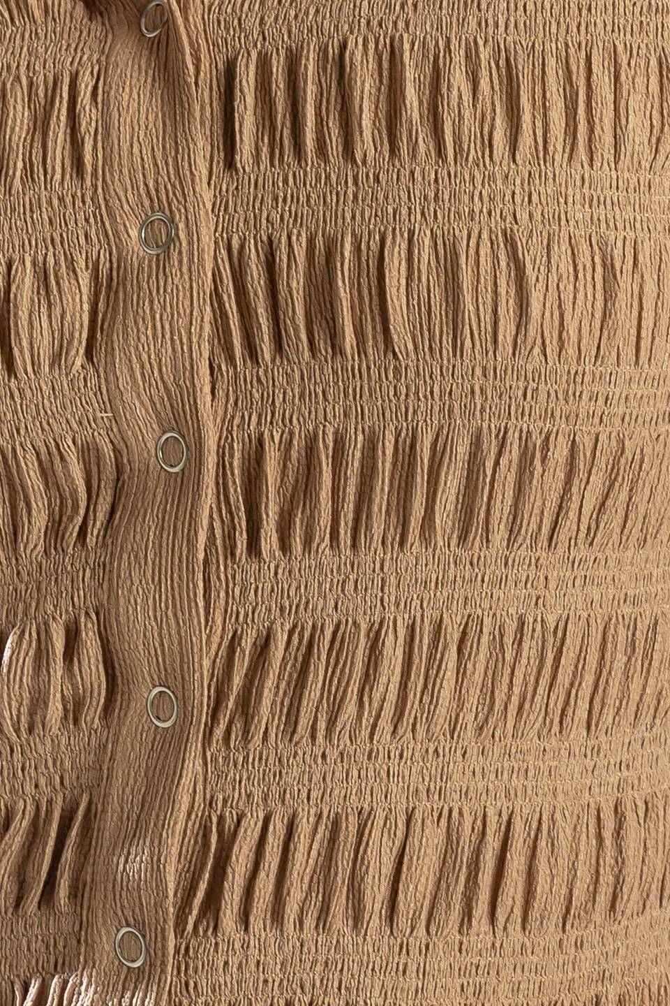 Expertly crafted, this textured woven top boasts a classic shirt collar, button down closure, and short sleeves. Perfect for a picnic at sunset or any stylish outdoor event. Elevate your wardrobe with this versatile and timeless piece.