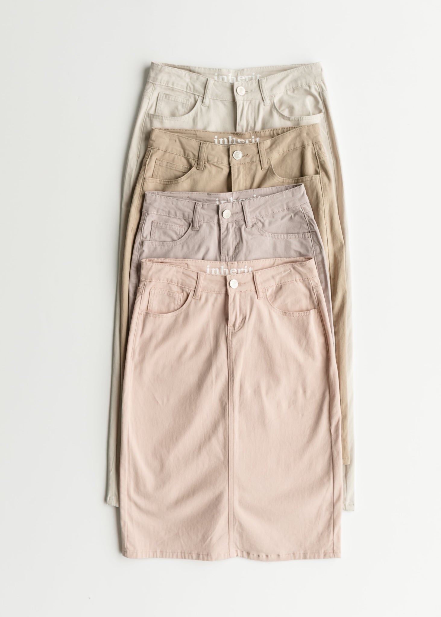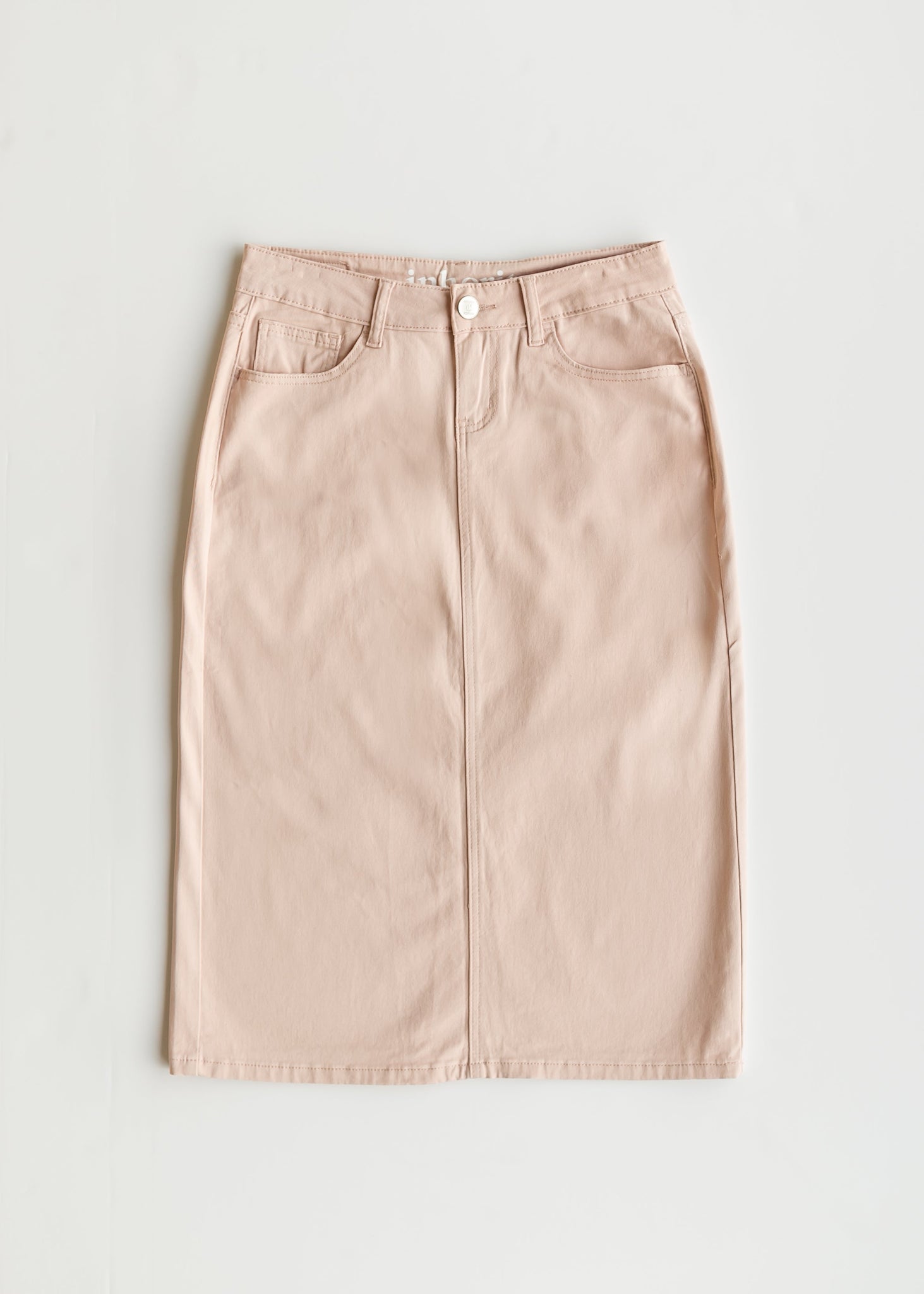 The Remi Denim Midi Skirt is a wardrobe must-have! An Inherit Design, this best-selling skirt offers a timeless, modest straight fit that pairs effortlessly with any outfit. Designed for all-day comfort, it features incredible stretch, ensuring ease of movement without the need for a back slit. The finished hem adds a polished touch, making it easy to dress up or down for any occasion. Available in two versatile lengths—26" and 29", this colored denim midi skirt provides the perfect amount of coverage while remaining stylish and flattering. Whether you're heading to church, running errands, or enjoying a casual day out, the Remi Midi Skirt will quickly become a go-to favorite in your closet. Style it with a cozy sweater for cooler months or a breezy blouse for a fresh, warm-weather look. Elevate your everyday wardrobe with this classic, comfortable, and effortlessly chic staple!