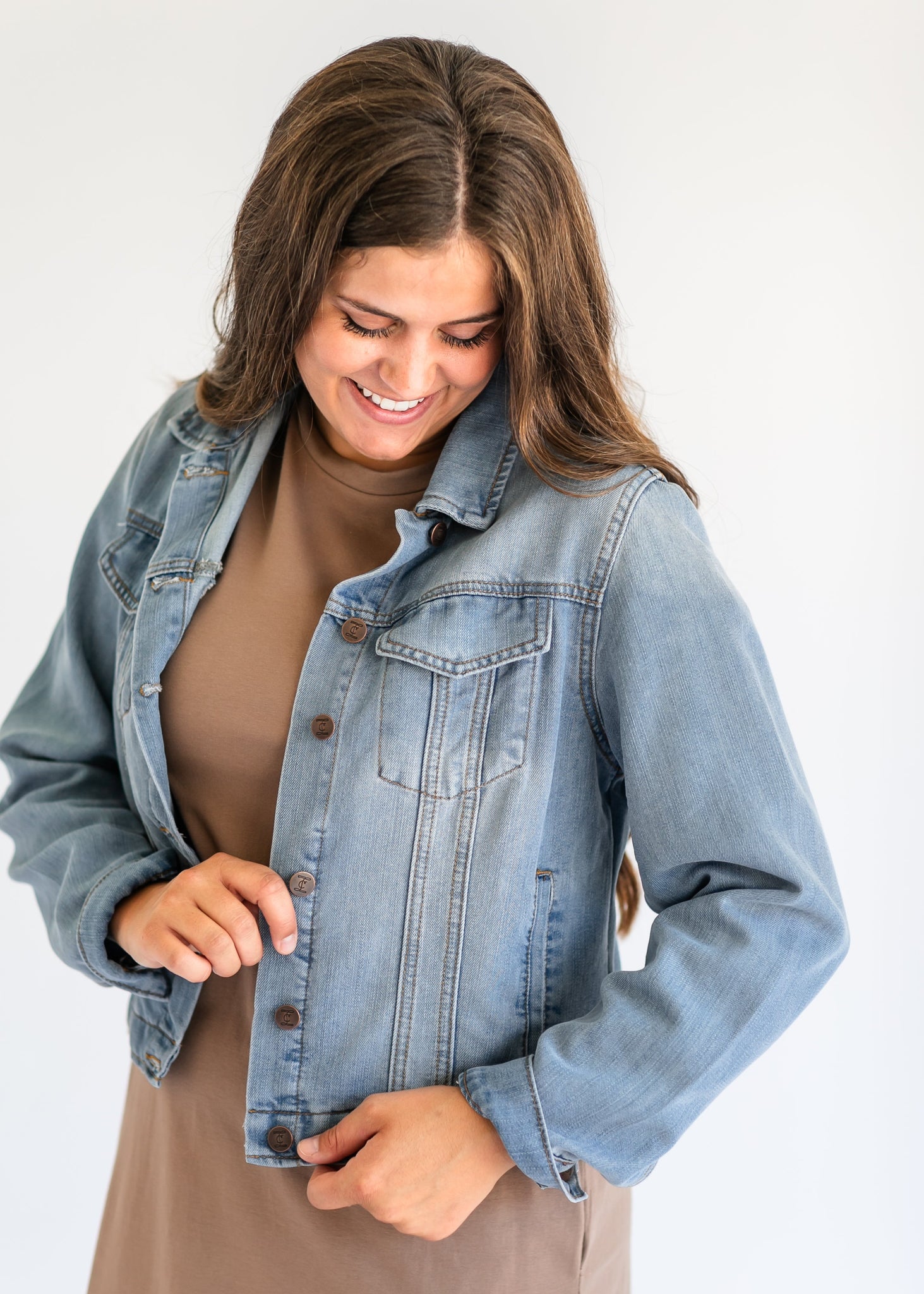 The Inherit Designed Shea Lightweight Denim Jacket is your go-to for year-round layering and effortless style. Available in five versatile colors, it’s made from ultra-soft denim that moves with you. With classic seam details, IC-logo brass buttons, and a lightweight feel, this jacket adds a polished touch to any outfit, perfect for layering in every season!