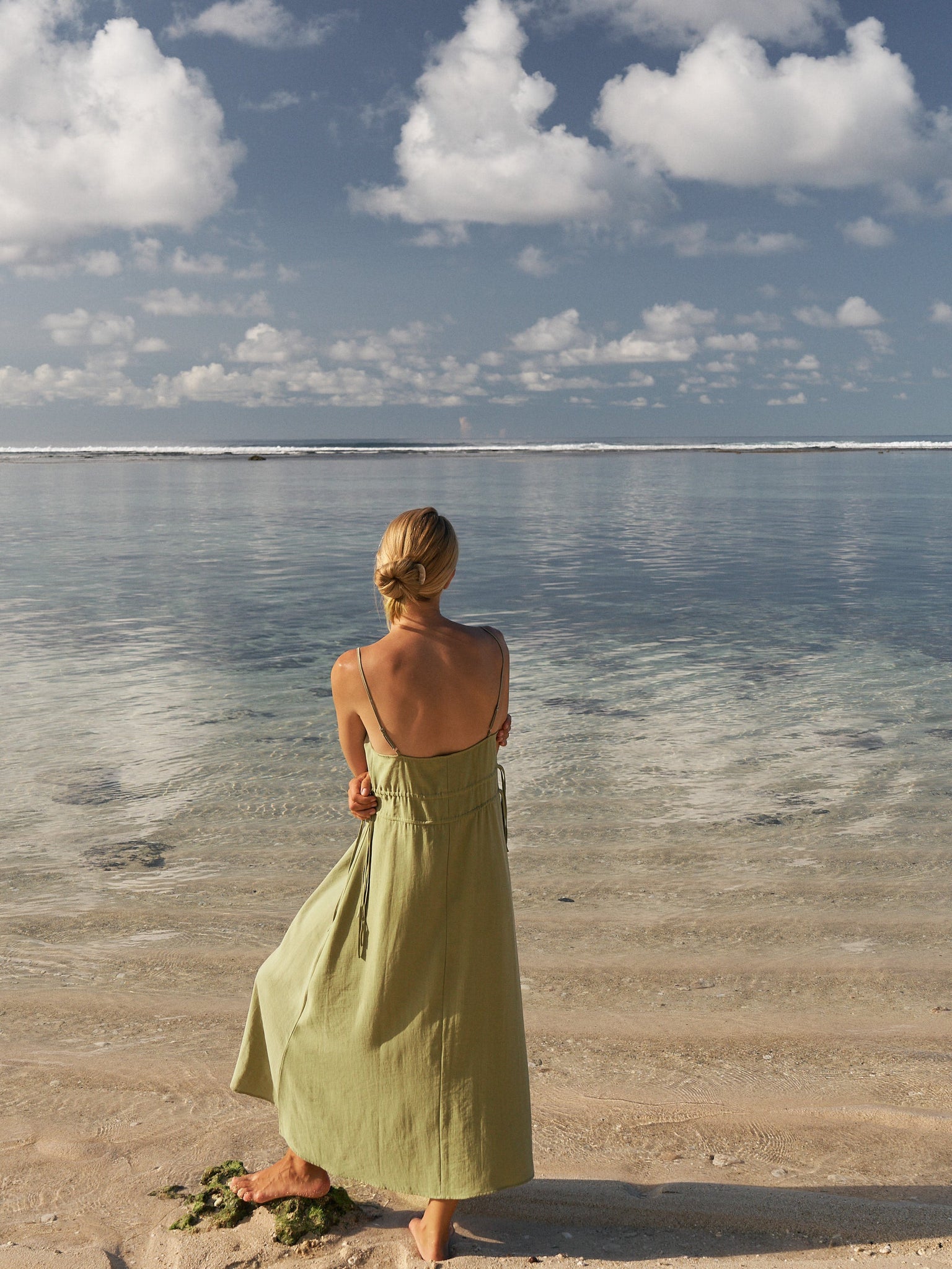 • Load image into Gallery viewer, Sofia Ties Maxi Dress - Khaki Green
