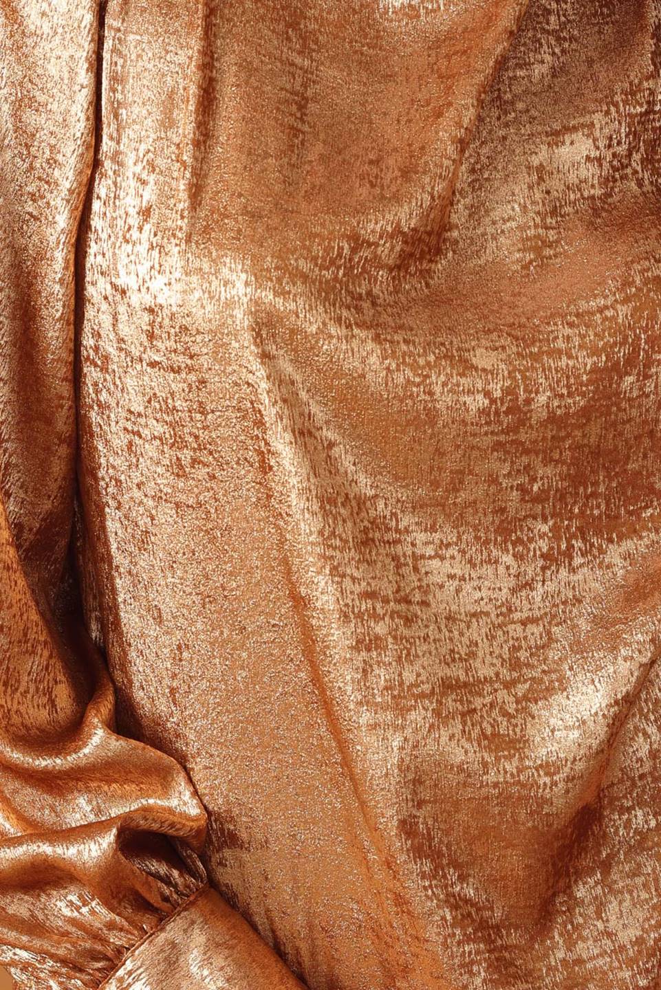 A woven top featuring high neckline, blouson sleeve and back neck button closure