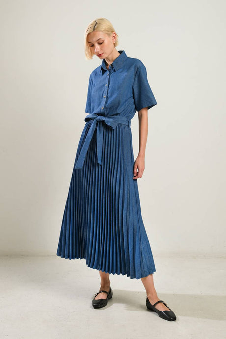 CIRCLE OF FRIENDS DENIM MIDI DRESS