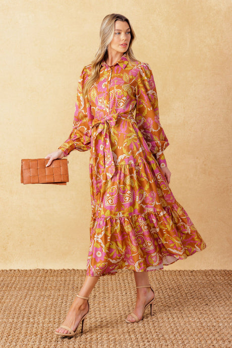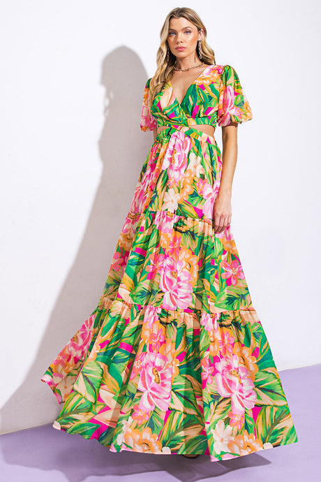 FLORAL EMBRACE WOVEN MIDI DRESS